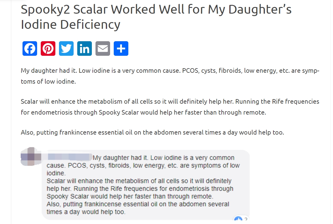Spooky2 Scalar ha funzionato bene per la carenza di Lodina di mia figlia