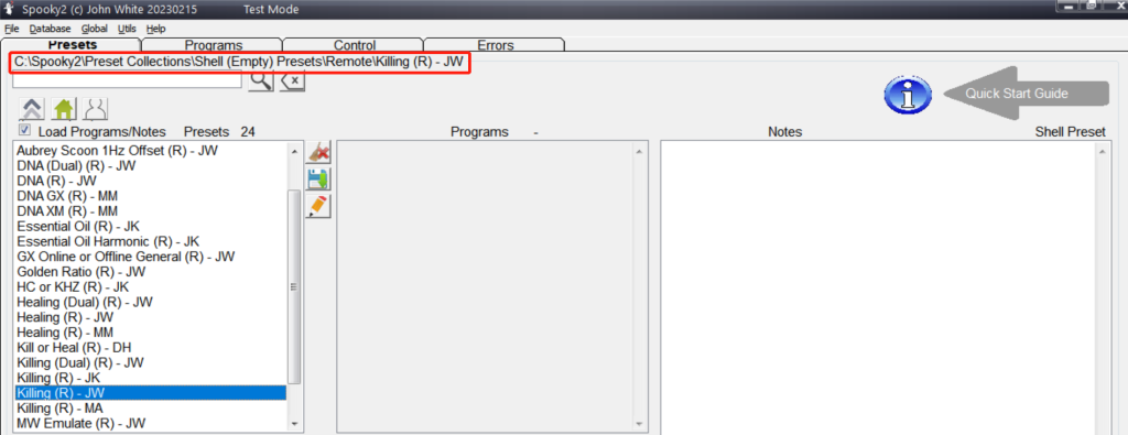 - In secondo luogo, apri il software Spooky2 e seleziona Shell (Empty) Presets > Remote > Killing (R)-JW.