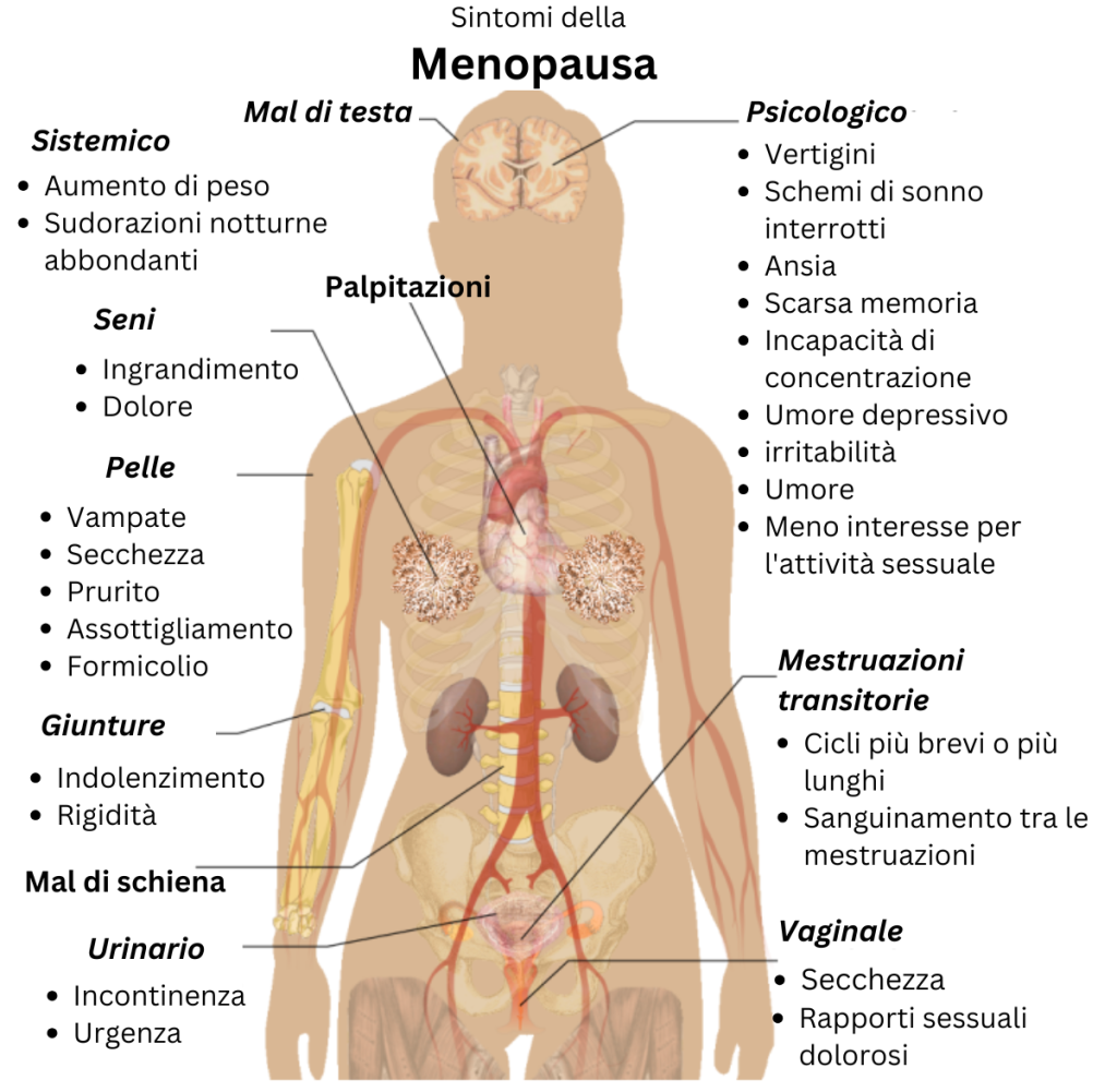 La menopausa si verifica quando le ovaie riducono la produzione di estrogeni e progesterone, portando a fluttuazioni ormonali. Questo squilibrio si traduce in una serie di sintomi, tra cui: