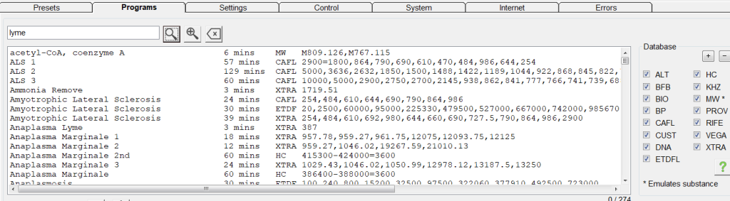 Abbiamo anche il più grande database che contiene quasi tutti i tipi di programmi per la malattia di Lyme.