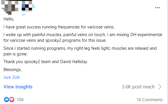 Mi sono svegliato con i muscoli e le vene al tatto doloranti. Sto combinando il DH sperimentale per le vene varicose e programmi Spooky2 per questo problema.