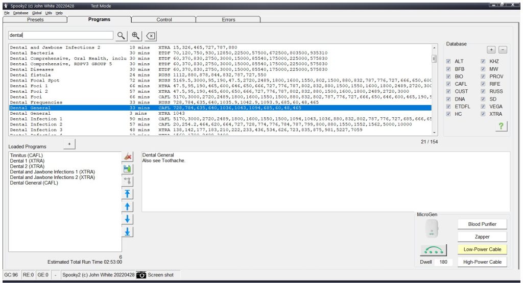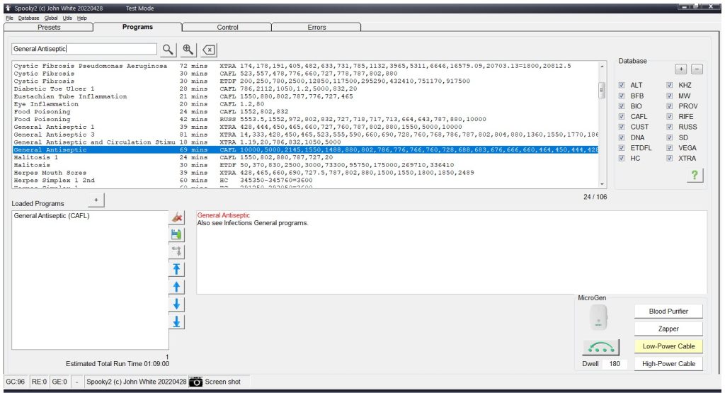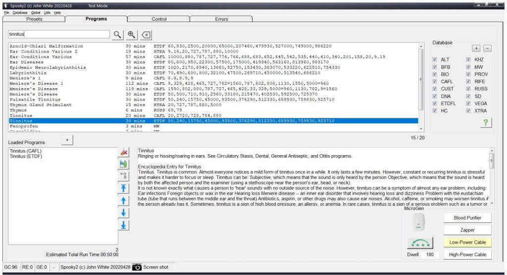 Per aiutare con l’acufene usando la modalità laser freddo Spooky2, devi solo collegare Cold Laser Twin alla porta Out1 del generatore Spooky2, quindi aprire il software Spooky2 e scegliere i programmi adatti da eseguire.