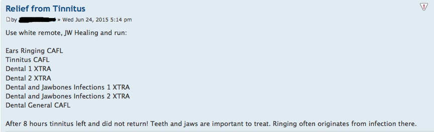 Dopo 8 ore l’acufene è scomparso e non è più tornato! È importante curare denti e mascelle, il ronzio spesso ha origine da un’infezione in quella zona.