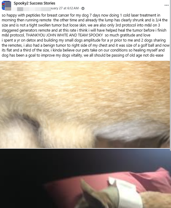 Così felice dei risultati dei peptidi per il tumore al seno del mio cane.