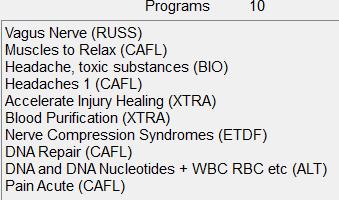 Il dolore al collo tendeva a irradiarsi verso la testa, quindi avevo già caricato il programma HEAD PAIN che avevo creato sul mio GenX, in modo che potesse essere accanto al divano su cui era sdraiato. Ci chiedevamo se qualcosa altro avesse contribuito alla riacutizzazione, quindi ho aggiunto alcune cose. Grazie alle informazioni di Andrew Roberts che ho trovato con una ricerca, ho aggiunto anche Vagus Nerve e Muscles to Relax.
