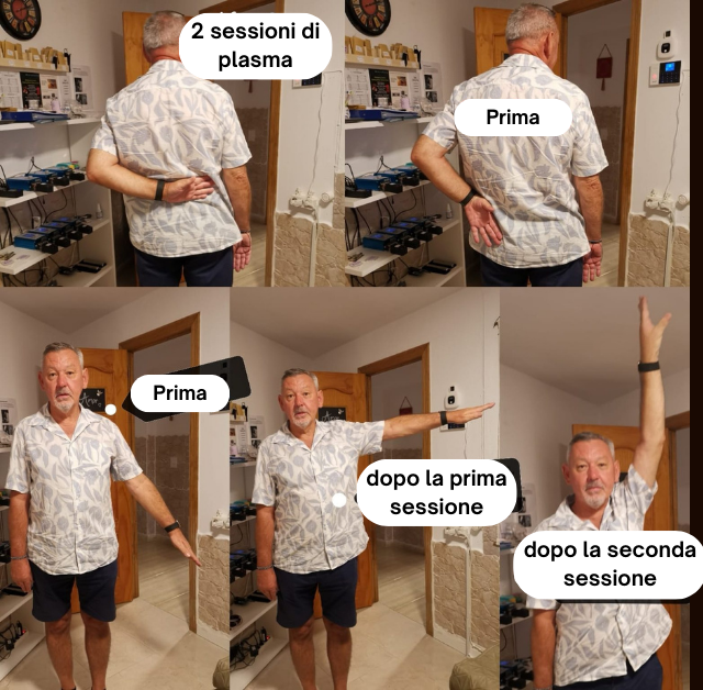 Storie di successo… Guarigione con il dispositivo al Plasma… Questo signore ha sofferto di un grave problema alla spalla e dopo che la fisioterapia non lo ha aiutarlo se non a rendergli le cose più dolorose, abbiamo eseguito un paio di sessioni solo col Plasma e la differenza è stata subito evidente e ora è molto più felice…