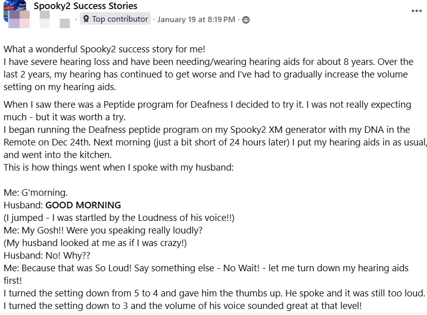 Questa esperienza รจ stata per me quasi miracolosa: sento molto meglio le persone e molti suoni che non riuscivo a percepire da oltre un anno. I programmi Peptide di Spooky2 sono estremamente benefici, in particolare quello per la sorditร , che continua a migliorare la mia vita ogni giorno.