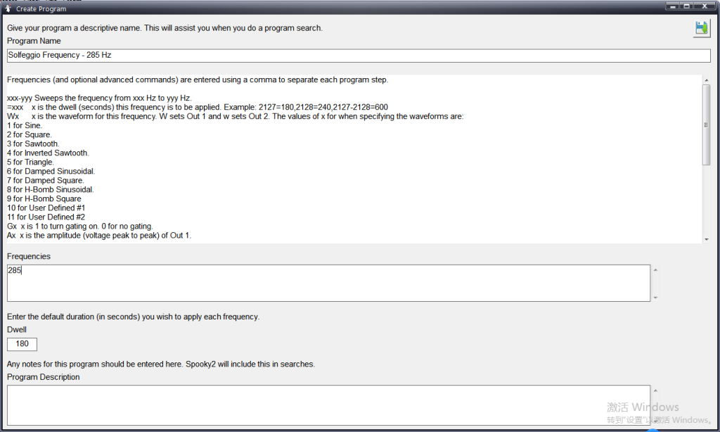Ora apri il software Spooky2 e fai clic su “File” nell’angolo in alto a sinistra. Poi clicca su “Crea programma” per creare un programma personalizzato come mostrato nell’immagine.