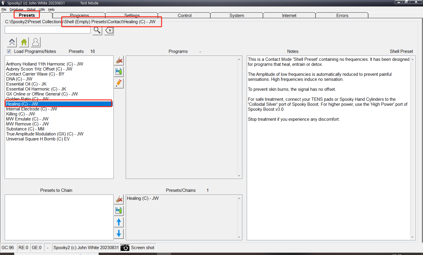 Passaggio 2: vai alla scheda Pesets (Preimpostazioni) e scegli Shell (vuote) > Contact (Contatto) > Healing (Guarigione)  (C) – JW.