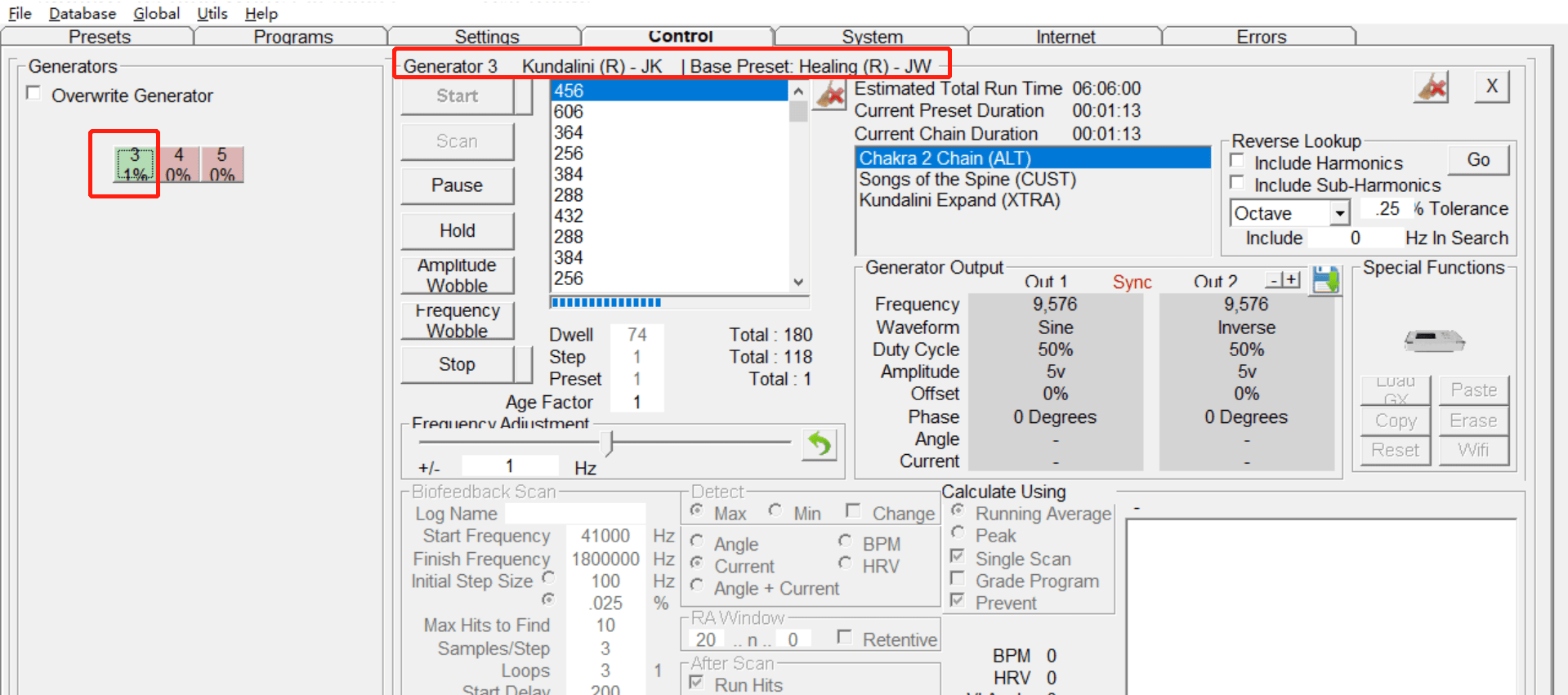 1. Avvia il software Spooky2. Vai alla scheda Preset e scegli Heal \ Remote \ Kundalini (R) โ JK